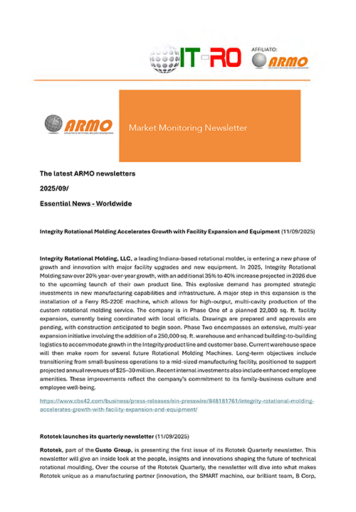 Armo’s Rotational Molding Newsletter 2025 08/10/2025 ARMO’S ROTATIONAL MOLDING 2025 ARMO’S ROTATIONAL MOLDING 15/04/2025 ARMO’S ROTATIONAL MOLDING 12/03/2025 ARMO’S ROTATIONAL MOLDING 25/02/2025 ARMO’S ROTATIONAL MOLDING 24/01/2025 ARMO’S ROTATIONAL MOLDING
